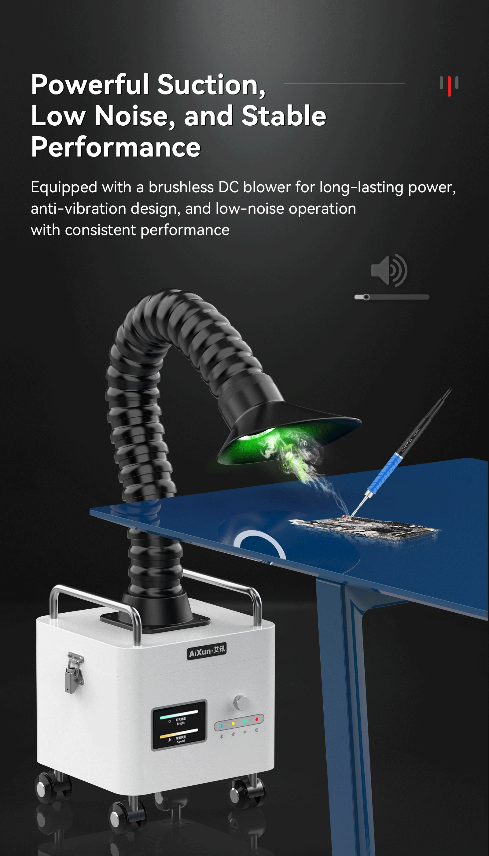 In electronic soldering and precision repair, fumes and dust are invisible enemies of focus and health. They may contain heavy metal particles, resin dust, and other harmful substances, posing a significant threat to respiratory health.