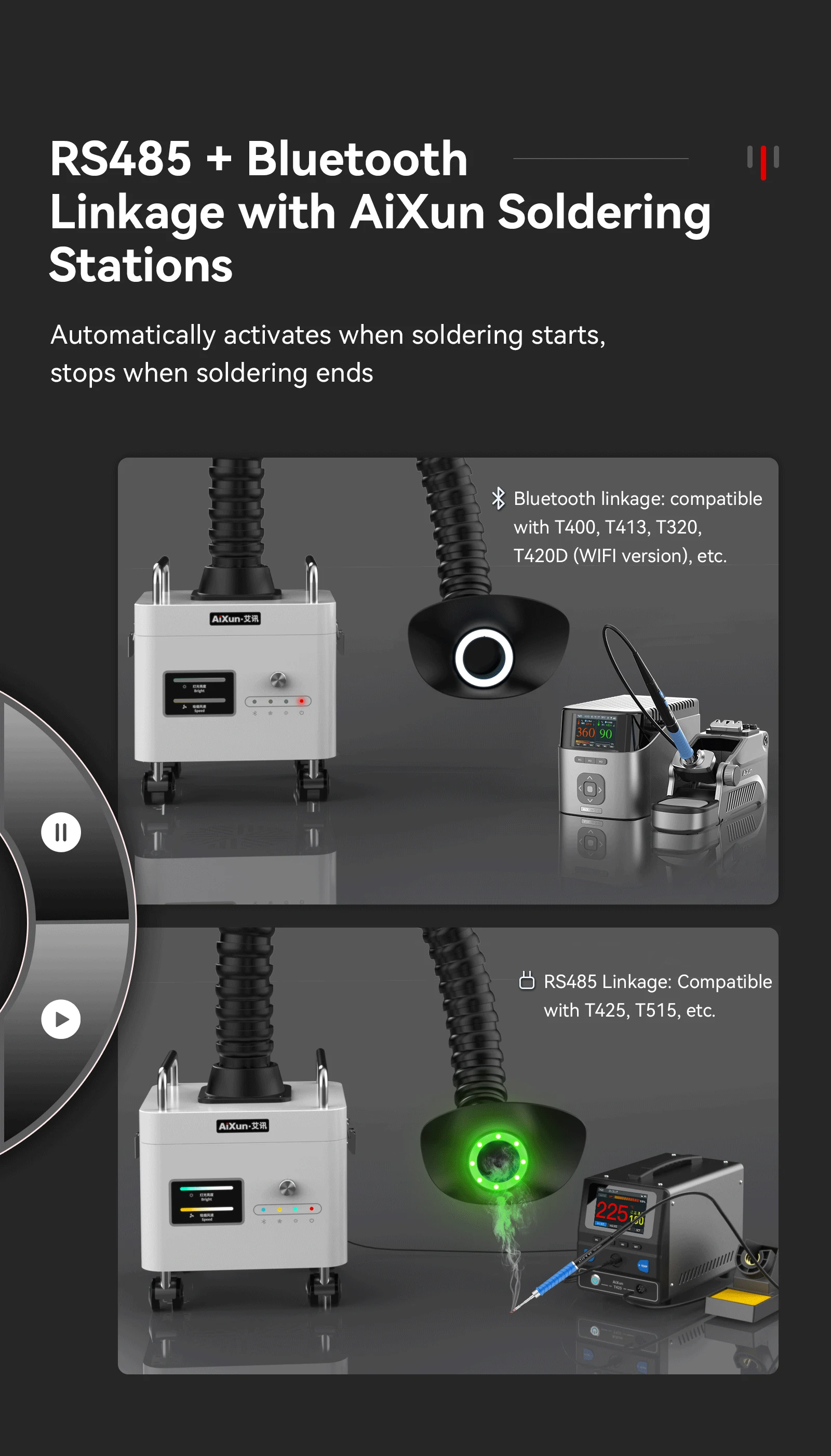 Intelligent control and multi-device collaboration allow for automatic response when linked to AiXun intelligent soldering station.